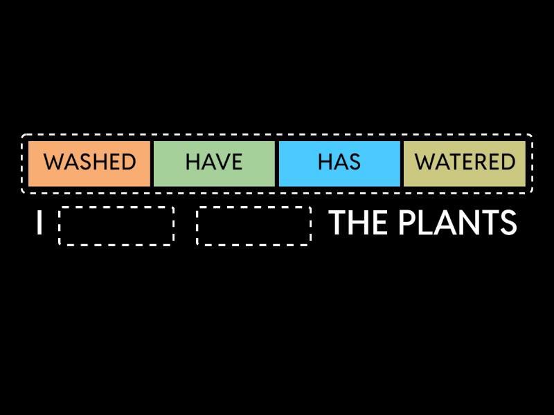 I ____ ____ THE PLANTS I ____ WASHED THE ____ WE ____ ____ THE PATIO SHE ____ CUT THE ____ SHE ____ ____ THE WINDOW THEY ____ HUNG ____ THE CLOTHES
