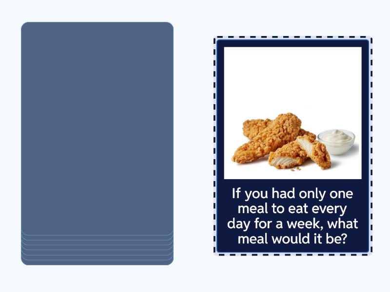 What would you do if you found a bag of cash on the street?, Where would you be right now if you could be anywhere?, How would you react if I told you there were a spider on your shoulder?, If a stranger on the street asked for some money, how much would you give?, If you were a teacher, which subject would you teach?, If you had only one meal to eat every day for a week, what meal would it be?, If all of your clothes had to be the same colour, what colour would they be?, What would you do if you lost your job tomorrow?.