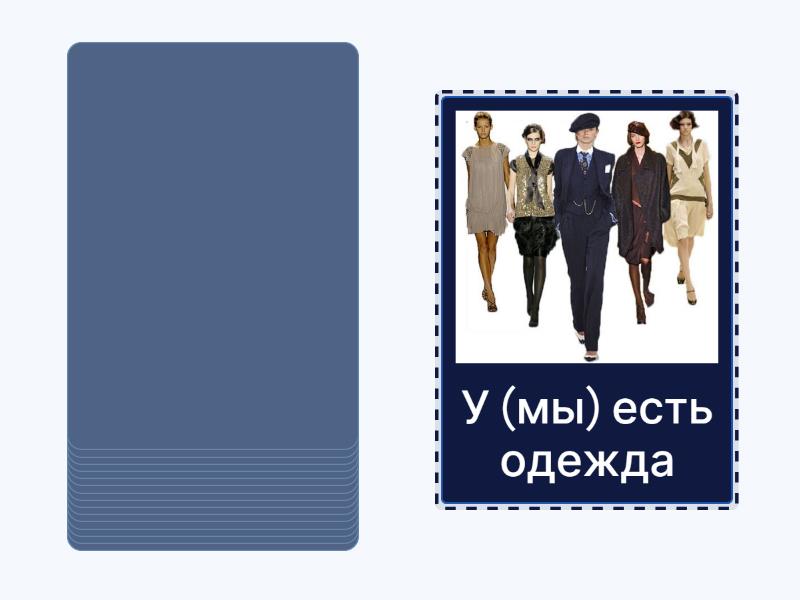У (он) есть семья, У (она) есть сын, У (мы) есть группа, У (я) есть машина , У (вы) есть проблемы, У (ты) есть время, У (мы) есть одежда, У (я) есть куртка, У (ты) есть дом и машина, У (вы) есть доска, стул и стол, У (он) есть комната, У (она) есть платье, У (я) есть класс, У (ты) есть шапка, У (вы) есть идея, У (они) есть ботинки.