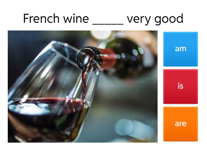 1) French wine _____ very good a) am b) is c) are 2) The children _____ in the garden. a) am b) is c) are 3) The president of the USA ____ an important person. a) am b) is c) are 4) These books______very interesting. a) am b) is c) are 5) I ____ sure Rob is going to the party. a) am b) is c) are 6) I think Chinese _____ a difficult language. a) am b) is c) are 7) I don't know if the bakery and the butcher ____ open. a) am b) is c) are 8) I _____ only 20 years old, but I feel 30. a) am b) is c) are 9) My grandparents ______ 75 years old. a) am b) is c) are 10) My older brother _____ crazy. a) am b) is c) are 11) Jill's dog _____ very cute. a) am b) is c) are 12) Your sisters _____very nice. a) am b) is c) are