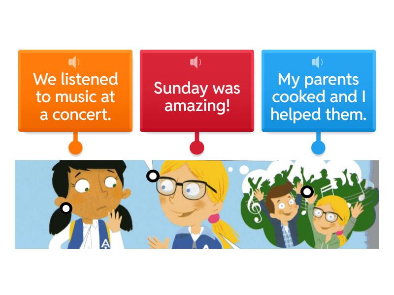 My parents cooked and I helped them., Sunday was amazing!, We listened to music at a concert..