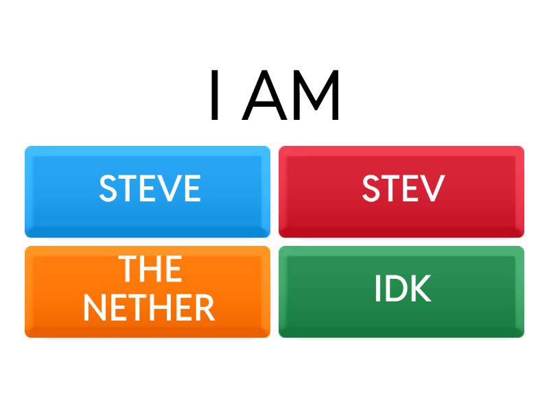 1) I AM a) STEVE b) STEV c) THE NETHER d) IDK 2) THE a) NETHER b) STEVE c) MONKE d) CHOI BOY 3) FLINT AND a) STEEL b) MICHEAL JORDAN 4) WATER BUCKET a) THROW b) RELEASE 5) IS HE A KING NO HES A a) Legend b) TECHNOBLADE