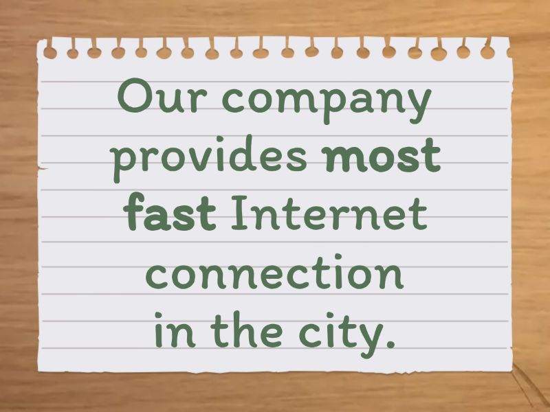 Celebrity endorsement doesn't make a product better or effectiver. - Celebrity endorsement doesn't make a product better or more effective., This new application is not as easier to use as the old one. - This new application is not as easy to use as the old one., Our company provides most fast Internet connection in the city. - Our company provides the fastest Internet connection in the city., I think that Coca Cola Christmas advertising campaign is more successful of all. - I think that Coca Cola Christmas advertising campaign is the most successful of all., How much people will come to the conference? - How many people will come to the conference?, There is few time left so we're going to be late. - There is little time left so we're going to be late., I saw a little advertisements of a new laptop and now I want to buy it. - I saw a few advertisements of a new laptop and now I want to buy it., It's ok, I don't need some help. - It's ok, I don't need any help.,