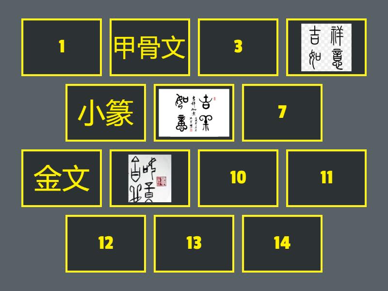 甲骨文, 金文, 小篆, 隸書, 楷書, 草書, 行書,