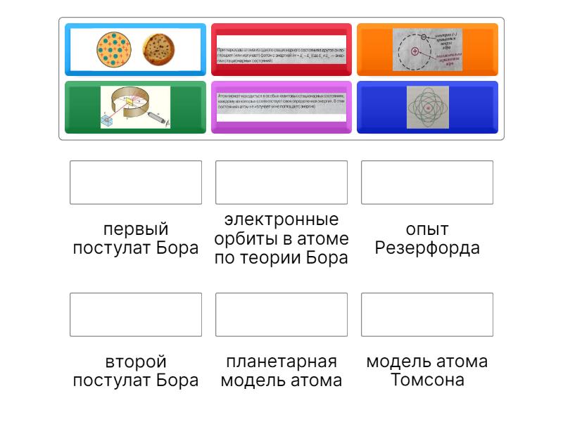 модель атома Томсона, опыт Резерфорда, электронные орбиты в атоме по теории Бора, планетарная модель атома, первый постулат Бора, второй постулат Бора,