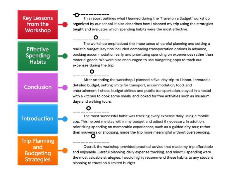 Introduction, Key Lessons from the Workshop, Trip Planning and Budgeting Strategies, Effective Spending Habits, Conclusion.
