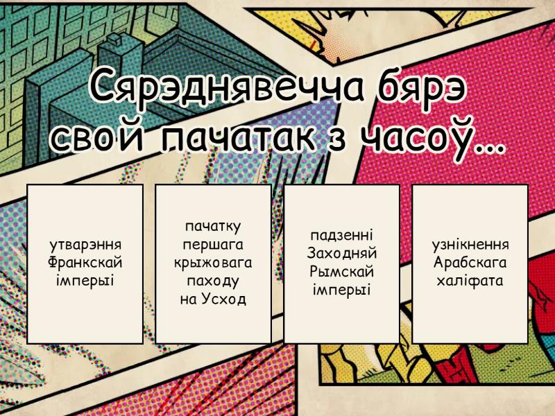 1) Сярэднявечча бярэ свой пачатак з часоў... a) утварэння Франкскай імперыі b) пачатку першага крыжовага паходу на Усход c) падзенні Заходняй Рымскай імперыі d) узнікнення Арабскага халіфата 2) Якога перыяды Сярэднявечча НЕ існуе? a) Ранняе b) Высокае c) Сярэдняе d) Позняе 3) Для абароны сваіх інтарэсаў купцы стваралі таварыствы, якія называліся... a) кірмашы b) гільдыі c) цэхі d) манаполіі 4) Купцы прынялі ўдзел у Крыжовых паходах, бо спадзяваліся... a) атрымаць зямельныя ўладанні і падданых b) распаўсюдзіць хрысціянскую веру на Усход c) атрымаць асабістую свабоду d) заваяваць новыя рынкі збыту тавараў 5) Прычына пачатку Стогадовай вайны - гэта ... a) вядзенне Крыжовых паходаў b) пагроза захопу Еўропы туркамі-сельджукамі c) імкненне французскага караля спыніць аб'яднанне краіны d) прэтэнзіі Англіі на французскі каралеўскі трон 6) Ерась - гэта... a) вандроўка да святых мясцін b) вучэнне, якое супярэчыць вучэнню царквы c) трыбунал (суд) каталіцкай царквы 7) Інквізіцыя - гэта... a) вандроўка да святых мясцін b) вучэнне, якое супярэчыць вучэнню царквы c) трыбунал (суд) каталіцкай царквы 8) Гусіцкія войны ў Чэхіі адбываліся на працягу. a) 1337-1453 гг. b) 1419-1434 гг. c) 1501-1519 гг. d) 1096-1291 гг. 9) Адзначце адно з наступстваў гусіцкіх войнаў. a) каталіцкая царква захавала ўсе свае багацці b) захоп крыжакамі Прагі c) сяляне перасталі плаціць дзесяціну d) Ян Гус адмовіўся ад сваіх ідэй 10) Адна з прычын ваенных поспехаў турак-асманаў на Балканах у XIV стагоддзі заключалася ў ... a) адсутнасці супраціву балканскіх народаў b) падтрымцы турэцкіх заваёўнікаў папам рымскім c) узаемнай міжусобнай барацьбе дзяржаў Балканскага паўвострава 11) Данатэла - гэта ... a) мастак, напісаў карціну “Нараджэнне Венеры” b) скульптар, стварыў “Давіда” c) архітэктар, узвёў купал сабора Санта-Марыя d) Чарапашка :) 12) Сандра Батычэлі - гэта ... a) мастак, напісаў карціну “Нараджэнне Венеры” b) паэт, напісаў “Боскую камедыю” c) архітэктар, узвёў купал сабора Санта-Марыя d) скульптар, стварыў “Давіда” 13) Дантэ Аліг’еры - гэта ... a) мастак, напісаў карціну “Нараджэнне Венеры” b) паэт, напісаў “Боскую камедыю” c) архітэктар, узвёў купал сабора Санта-Марыя d) скульптар, стварыў “Давіда” 14) Філіпа Брунелескі - гэта ... a) мастак, напісаў карціну “Нараджэнне Венеры” b) паэт, напісаў “Боскую камедыю” c) архітэктар, узвёў купал сабора Санта-Марыя d) скульптар, стварыў “Давіда” 15) Якім вынаходствам праславіўся немец Іаган Гутэнберг? a) Вынайшаў кнігадрукаванне b) Вынайшаў тэлескоп c) Стварыў першы паравы рухавік d) Распрацаваў рэцэпт фарфору