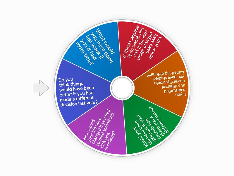 1) What would you have done last week if you’d had more time? 2) What would have been different about your life if you had grown up in another country? 3) If you had studied at a different university, would you have studied something different? 4) Would your life have been different if your parents had given you a different name? 5) How would your life have changed if you had studied something different in college? 6) Do you think things would have been better if you had made a different decision last year?