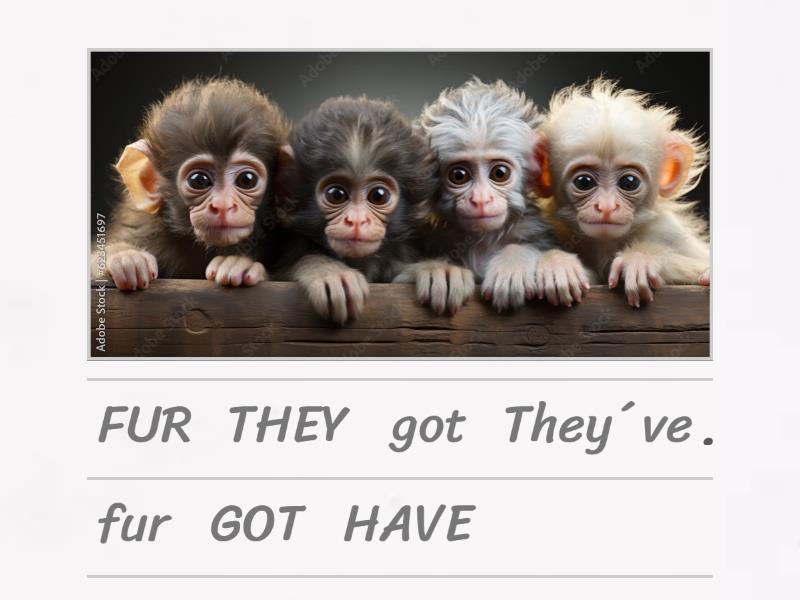 THEY HAVE GOT FUR. They´ve got fur, They haven´t got feathers. , Have they got spots? No, they haven´t , Have they got fur ? Yes, they have, THEY HAVE GOT WINGS. They´ve got wings., They haven´t got feathers., Have penguins got stripes? No, they haven´t, THEY HAVE GOT FOUR LEGS. They´ve got four legs. , They haven´t got spots., Have rhinos got long tail ? No, they haven´t,