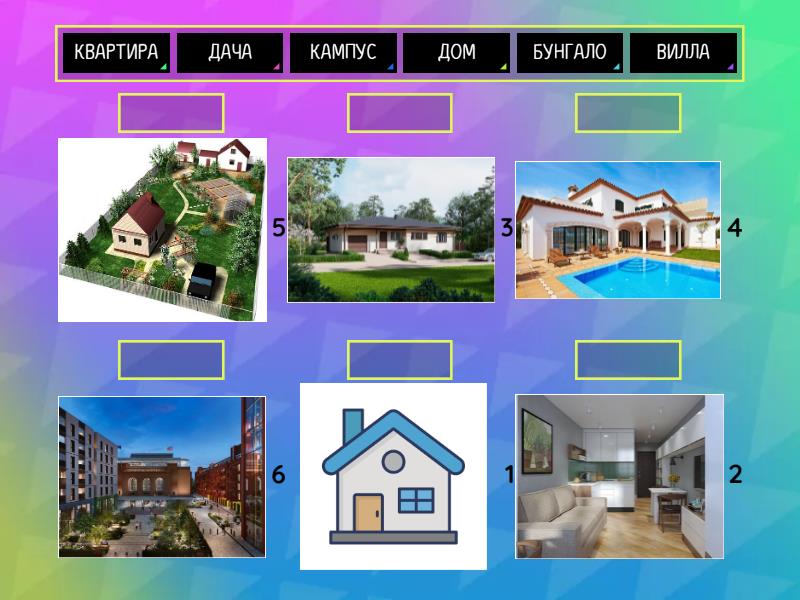ДОМ - 1, КВАРТИРА - 2, БУНГАЛО - 3, ВИЛЛА - 4, ДАЧА - 5, КАМПУС - 6,