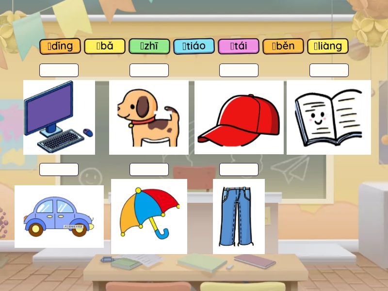 条tiáo, 本běn, 台tái, 只zhī, 顶dǐng, 辆liàng, 把bǎ,