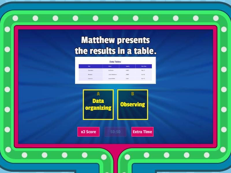 1) Matthew presents the results in a table. a) Data organizing b) Observing 2) Vicky leaves ice cubes outside the fridge. After 1 hour, they melt. a) Predicting b) Observing 3) Karina brings an umbrella because she thinks it is going to rain. a) Inferring b) Predicting 4) Tam uses a ruler to measure the height of her plant. a) Measuring b) Classifying 5) Sam counts the number of female and male students in Primary 5. a) Using numbers b) Inferring 6) Ned can tell that the bank is on the west of the shopping mall. a) Using space relationship b) Predicting 7) Mark falls asleep in class today. I infer that he went to bed late last night. a) Inferring b) Measuring 8) Emma feels the texture of clay soil with her hands. a) Observing b) Using numbers 9) Kate arranges her clothes according to color. a) Classifying b) Predicting