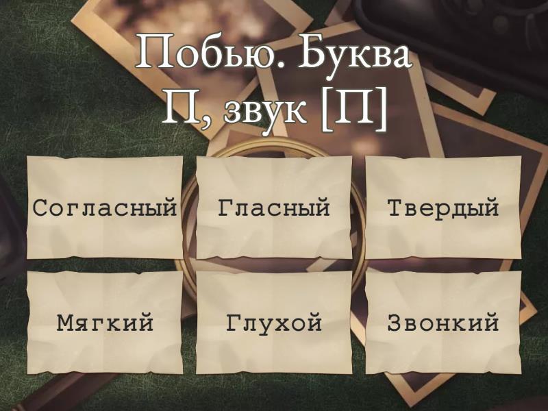 1) Побью. Буква П, звук [П] a) Согласный b) Гласный c) Твердый d) Мягкий e) Глухой f) Звонкий 2) Побью. Буква О, звук [А] a) Гласный b) Согласный c) Ударный d) Безударный 3) Побью. Буква Б, звук [Б'] a) Мягкий b) Твердый c) Гласный d) Согласный e) Звонкий f) Глухой 4) Побью. Буква Ь, звук [-] a) Согласный b) Гласный c) Мягкий d) Твердый e) Глухой f) Не имеет характеристики 5) Побью. Буква Ю, звук [Й'] a) Гласный b) Согласный c) Твердый d) Мягкий e) Звонкий f) Глухой 6) Побью. Буква Ю, звук [У] a) Согласный b) Гласный c) Ударный d) Безударный e) Мягкий f) Парный 7) Количество букв и звуков в слове "побью". a) 5 букв, 6 звуков b) 5 букв, 4 звука c) 5 букв, 5 звуков d) 4 буквы, 5 звуков e) 6 букв, 6 звуков f) 4 буквы, 4 звука