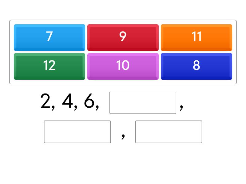2, 4, 6, ____, ____ , ____ 30, 32, 34, ____ , ____ , ____ , 42, ____ 64, 66, ____ , ____ , ____ , ____ , 76 28, 26, 24, ____, ____, ____, ____ 54, 52, ____, 48, ____, 44, ____ 80 , 78, ____, ____, 72, ____, ____