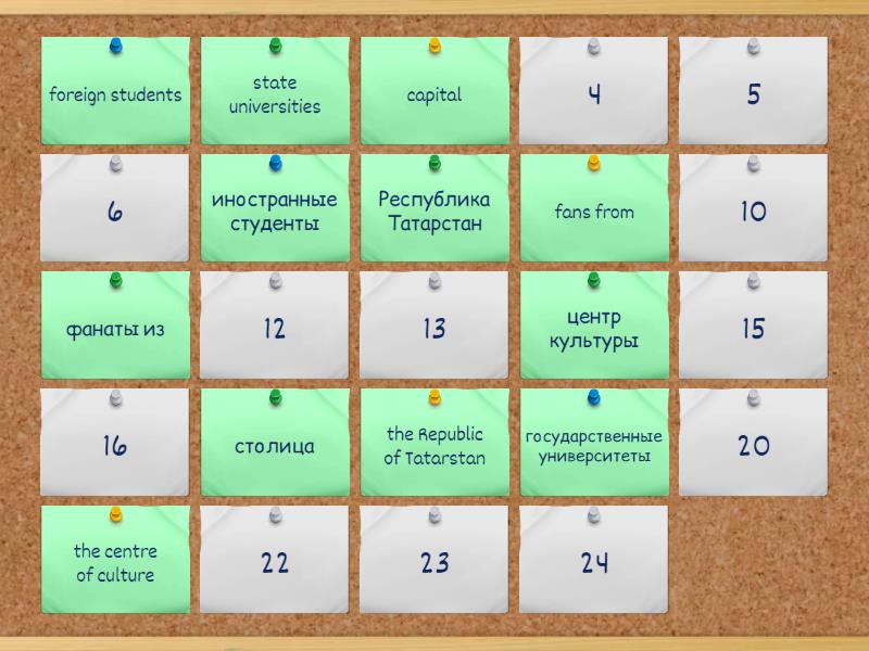 capital - столица, the Republic of Tatarstan - Республика Татарстан, the centre of culture - центр культуры, fans from - фанаты из, state universities - государственные университеты, foreign students - иностранные студенты, thousand of tourist - тысяча туристов, beautiful sights - красивые достопримечательности, excellent travel routes - отличные маршруты путешествий, traditional food - традиционная еда, comfortable ways of travelling - удобные способы передвижения, tourist attractions - туристические достопримечательности,