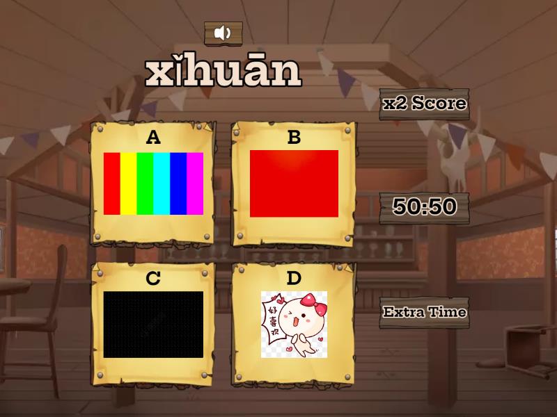 1) xǐhuān a) b) c) d) 2) yánsè a) b) c) d) 3) hóngsè a) b) c) d) 4) huángsè a) b) c) d) 5) lánsè a) b) c) d) 6) báisè a) b) c) d) 7) hēisè a) b) c) d)