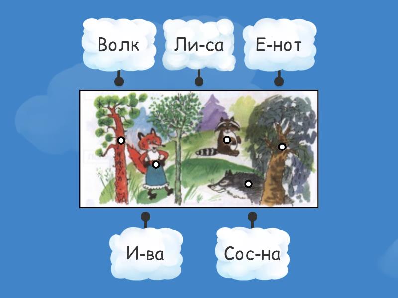 И-ва, Сос-на, Е-нот, Ли-са, Волк.