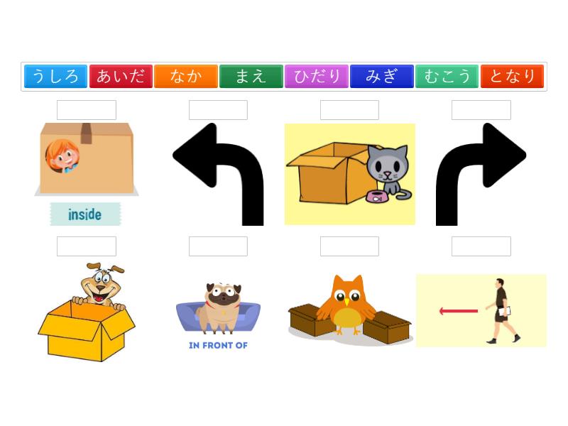 あいだ, むこう, みぎ, ひだり, まえ, うしろ, なか, となり,