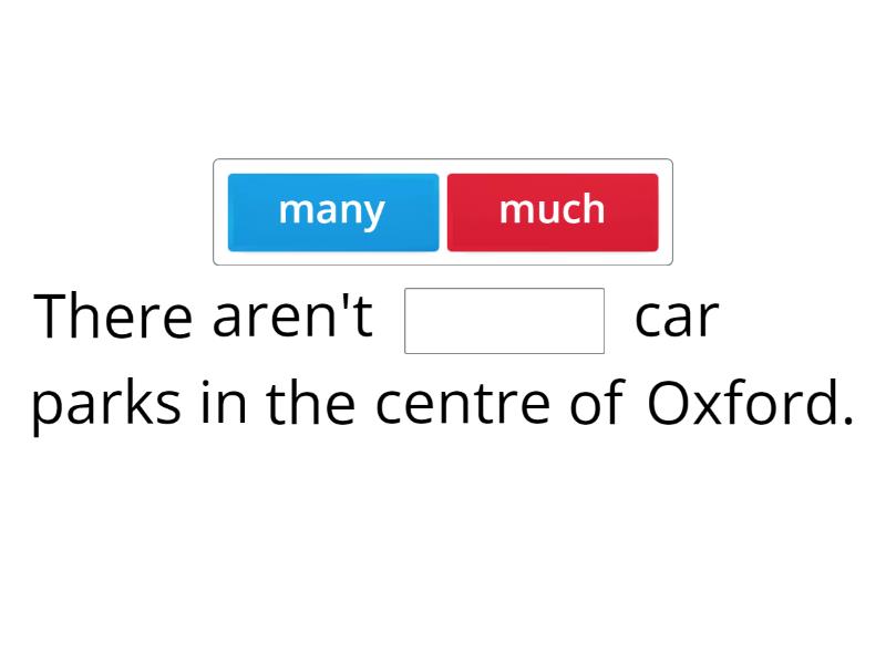 There aren't ____ car parks in the centre of Oxford. Hurry up! We only have ____ time before the coach leaves.score There are ____ shops near the university.score It's very quiet. There aren't ____ people here today.score There are ____ expensive new flats next to the river. ____ sugar do you take in your tea? Dad, I need ____ money for school. There are ____ things that you can do to improve your writing. ____ stars are there in the sky? ____ money is in a bank?