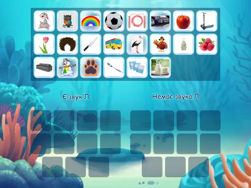 Є звук Л: , , , , , , , , , , , Немає звука Л: , , , , , , , , , , ,