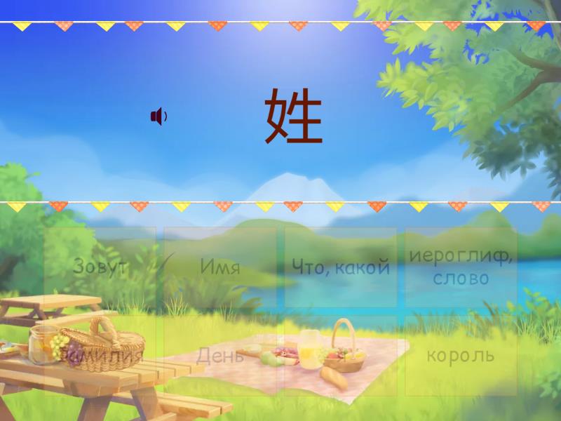 Фамилия - 姓, я - 我, Что, какой - 什么, Имя - 名字, Зовут - 叫, День - 天, король - 王, иероглиф, слово - 字,