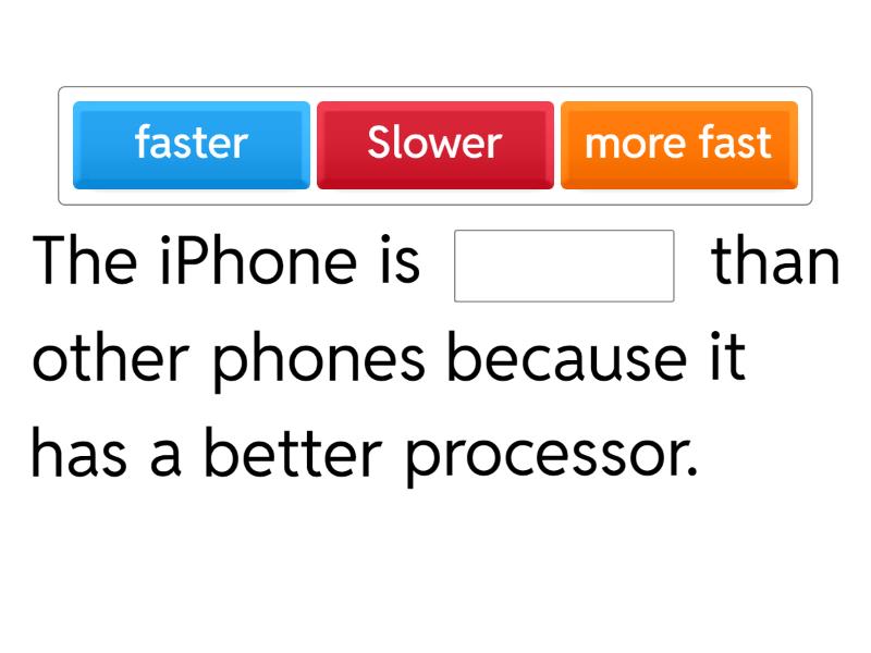 The iPhone is ____ than other phones because it has a better processor. This ad is the ____ among phone commercials because it clearly shows user problems. Apple’s campaign communicates the message ____ than other companies. Compared to other ads, this one performs ____ in attracting attention.