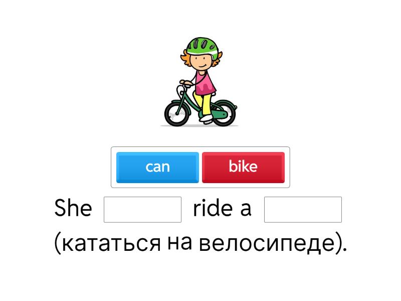 She ____ ride a ____ (кататься на велосипеде). ____ ____ play ____? ____, I ____ ____ football. Can ____ ____ a ____? ____, ____ ____ ride a bike.