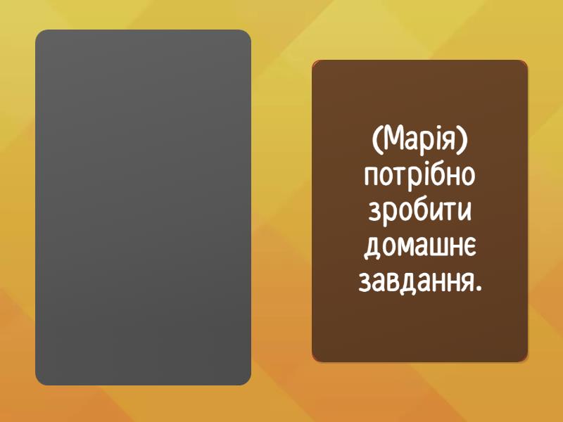 (Марія) потрібно зробити домашнє завдання., (Роман) необхідно піти до лікаря., Лікар рекомендував (хлопець) приймати ліки., Я подарував квіти (подруга)., Вона часто пише листи (сестра)., Викладач порадив (студент) прочитати книжку., Я зателефонував своєму (лікар)., (Аптекарі) дозволили продавати ліки від кашлю., (Я) лікував зуби стоматолог., (Вона) потрібна твоя допомога..