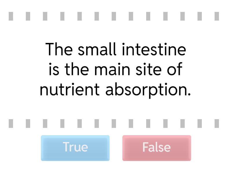 True: The small intestine is the main site of nutrient absorption., Enzymes in saliva begin the breakdown of carbohydrates., The large intestine’s main role is to absorb water from undigested food., The oesophagus is a muscular tube that pushes food towards the stomach by peristalsis., Metabolism refers to all the chemical reactions that occur within the body’s cells., Basal metabolic rate (BMR) is the minimum energy required for basic body functions at rest., Energy from carbohydrates, fats, and proteins can all be used by the body for respiration., The kidneys remove urea, excess salts, and water from the blood., The liver converts excess amino acids into urea in a process called deamination., Carbon dioxide is mainly excreted through the lungs., The urinary bladder stores urine before it is excreted., The pancreas produces enzymes that help digest proteins, fats, and carbohydrates., Bile is produced by the liver and stored in the gallbladder., Fibre in the diet helps the large intestine move waste along., Cellular respiration releases energy in the form of ATP., The liver helps detoxify harmful substances from the blood., Urine is mainly composed of water, urea, and salts., The small intestine has villi and microvilli to increase surface area for absorption., Peristalsis occurs throughout the digestive tract to move food along., Metabolic rate can be affected by age, sex, and activity level., False: The stomach produces bile to help digest fats., Anabolism is the process of breaking down molecules to release energy., Catabolism involves building large molecules from smaller ones., Sweat glands help remove carbon dioxide from the body., The stomach absorbs most nutrients from food., The large intestine produces digestive enzymes., Fat is mainly digested in the stomach., Urea is produced in the kidneys., The lungs remove nitrogenous waste from the body., Metabolism only refers to the breakdown of food.,