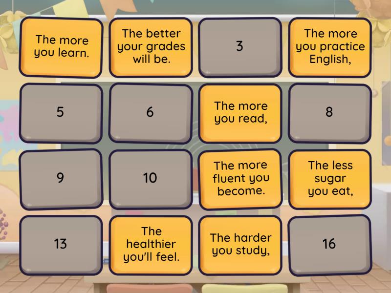 The more you practice English, - The more fluent you become., The less sugar you eat, - The healthier you'll feel., The harder you study, - The better your grades will be., The more you read, - The more you learn., The sooner we leave, - The sooner we'll arrive., The more water you drink, - The more hydrated you are., The more you exercise, - The stronger you get., The more you cook at home, - The less money you spend.,