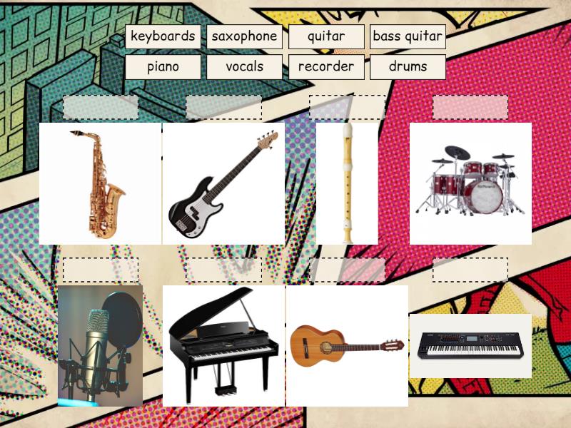 quitar, piano, drums, bass quitar, keyboards, vocals, saxophone, recorder,