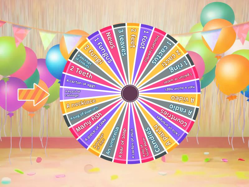 1) A carton of eggs 2) 2 Teeth 3) A package of cookies 4) 2 fungi 5) 1 fungus 6) News 7) 3 leaves 8) 2 feet 9) 1 foot 10) trousers (pants) 11) 1 cactus  12) 2 cacti 13) 1 ring  14) 1 gallon of water 15) Half a dozen eggs 16) A video 17) A radio 18) Countries 19) 1 kilo of oranges 20) A party 21) Candies 22) A roll of toilet paper 23) A carton of milk 24) A bar of soap 25) An umbrella 26) A package of chips 27) A piece of cake 28) Many fish 29) A bag of popcorn 30) A necklace 31) A head of cabbage