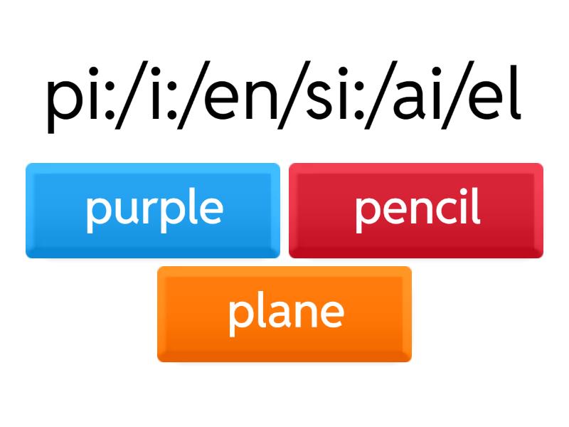 1) pi:/i:/en/si:/ai/el a) purple b) pencil c) plane 2) door a) di:/double ou/a: b) di:/eu/double el c) di:/a:/ju:/em 3) si:/ei/kei/i: a) cold b) come c) cake 4) blue a) bi:/ou/ei/a:/di: b) bi:/el/ju:/i: c) bi:/a:/ou/dablju:/en 5) ef/ai/vi:/i: a) four b) fine c) five 6) snake a) es/em/ei/double el b) es/en/ei/kei/i: c) es/si:/ejč/double eu/el 7) em/ou/en/kei/i:/vai a) monster b) monkey c) money 8) tree a) ti:/a:/double i: b) ti:/ejč/a:/double i: c) ti:/a:/ei/em 9) es/ejč/ou/i:/es a) shoes b) socks c) short 10) black a) bi:/ou/ei/a:/di: b) bi:/el/ei/si:/kei c) bi:/a:/ou/dablju:/en