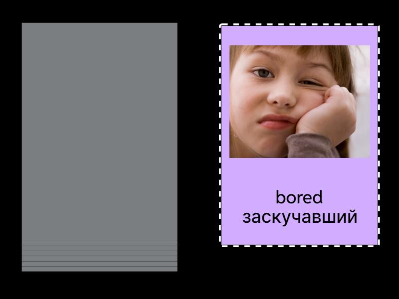 angry злой, bored заскучавший , kind добрый , tired уставший , friendly дружелюбный , intelligent разумный, умный , helpful отзывчивый, готовый помочь , funny забавный, веселый, смешной .
