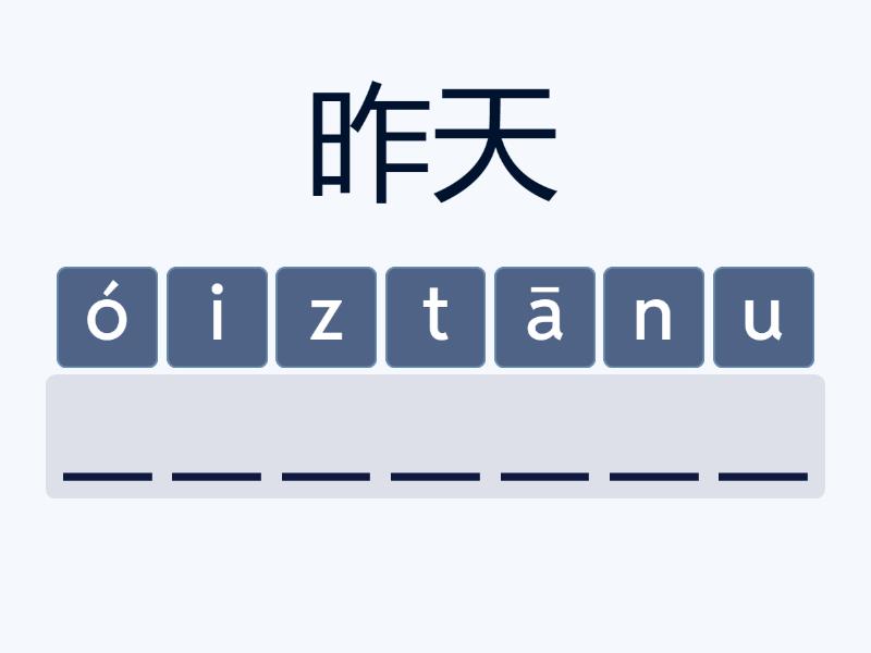 zuótiān - 昨天, míngtiān - 明天, jīntiān - 今天, yuè - 月, hào - 号, jié - 节, tiān - 天, xīngqī - 星期, jīnnián - 今年, míngnián - 明年, qùnián - 去年,