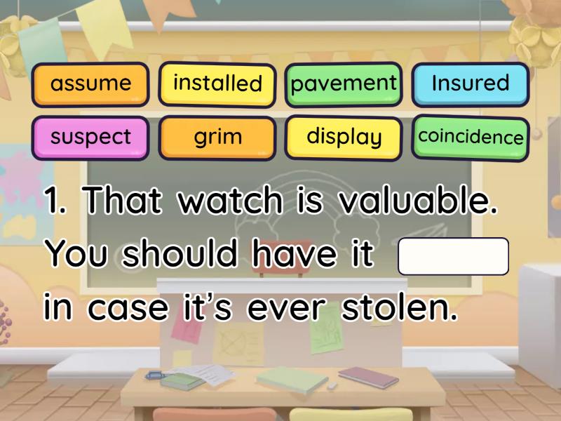 1. That watch is valuable. You should have it ____ in case it’s ever stolen. 2. The police are looking for the ____ . He has dark hair and was wearing a green shirt. 3. The news about the plane crash was ____ . There were no survivors.____ 4. I was just thinking of Tom, when I bumped into him on the street. What a ____ 5. Alex had a new house alarm ____ to keep his home safe.6. 6. My brother fell on the ____ at the skateboard park and broke his wrist 7. I ____ that I’m meeting her at the usual time. But maybe I’d better check The department store has a beautiful vacation ____ in their window.