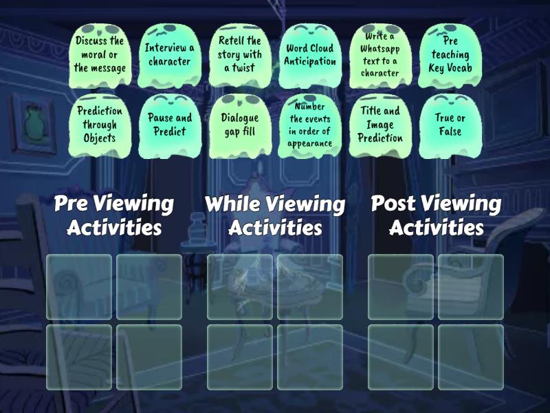 Pre Viewing Activities: Title and Image Prediction, Prediction through Objects, Word Cloud Anticipation, Pre teaching Key Vocab, While Viewing Activities: Pause and Predict, Number the events in order of appearance, True or False, Dialogue gap fill, Post Viewing Activities: Retell the story with a twist, Discuss the moral or the message, Write a Whatsapp text to a character, Interview a character,