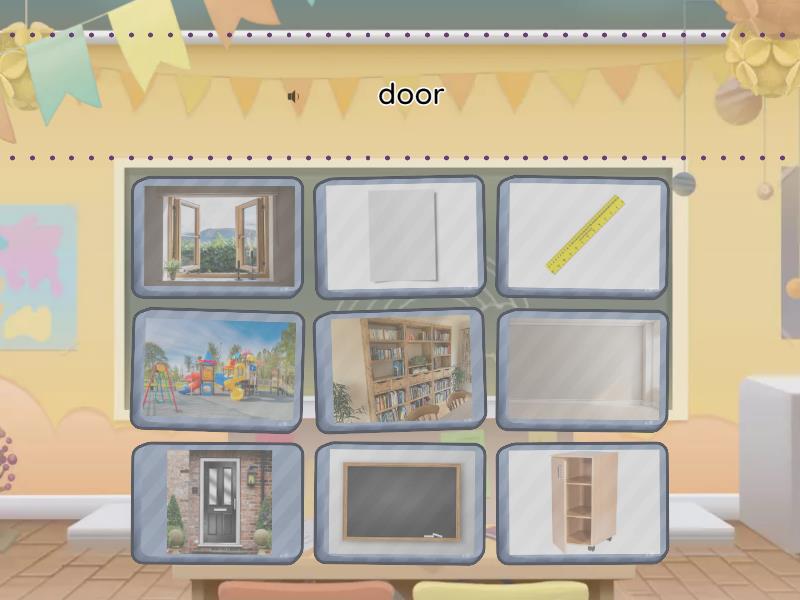 door, board, wall, ruler, window, playground, bookcase, paper, cupboard,
