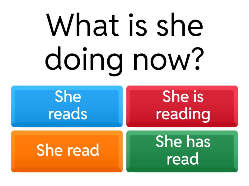 1) What is she doing now? a) She reads b) She is reading c) She read d) She has read 2) He ___ to school every day. a) goes b) is going c) went d) going 3) They ___ dinner at the moment. a) eat b) are eating c) ate d) eats 4) We ___ TV on weekends. a) watch b) are watching c) watched d) watches 5) I ___ to music right now. a) am listening b) listen c) listens d) listened 6) She ___ coffee every morning. a) drinks b) is drinking c) drink d) drank 7) They ___ a movie now. a) are watching b) watch c) watched d) watches 8) He ___ his homework in the evening. a) does b) is doing c) did d) done 9) We ___ to the park every Sunday. a) go b) are going c) went d) gone 10) I ___ a book right now. a) am reading b) read c) reads d) reading