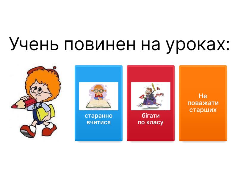 1) Учень повинен на уроках: a) старанно вчитися b) бігати по класу c) Не поважати старших 2) Назвіть людську чесноту a) щедрість b) жадібність c) нахабність 3) Як треба спілкуватися один з одним ? a) перебивати b) гучно кричати c) уважно слухати  4) Що таке толерантність? a) повага та терпимість до людей b) не звертають уваги один на одного c) не допомагають один одному 5) Що таке показники здоров'я? a) температура тіла людини, зріст b) температура поверхні землі c) температура повітря 6) Що треба робити для здорового способу життя ? a) робити зарядку b) весь час гратися в комп'ютерні ігри c) не чистити зуби