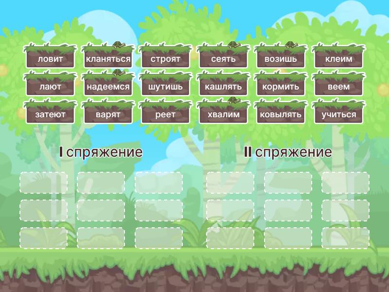 I спряжение: сеять, затеют , кашлять, кланяться, надеемся, реет, веем, лают, ковылять, II спряжение: клеим, строят, кормить, варят, хвалим, учиться, шутишь, возишь, ловит,