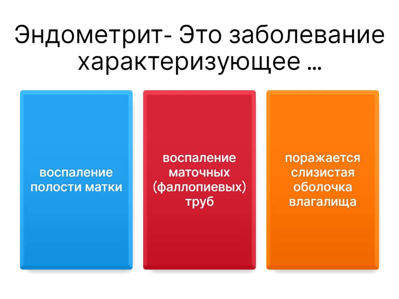 1) Эндометрит- Это заболевание характеризующее ... a) воспаление полости матки b) воспаление маточных (фаллопиевых) труб c) поражается слизистая оболочка влагалища 2) Какие симптомы могут наблюдаться при цервиците? a) Выделения из влагалища b) Боли внизу живота c) Кровянистые выделения после полового акта d) Все перечисленное 3) Какие выделения могут наблюдаться при раке шейки матки? a) Обильные, творожистые, без запаха b) скудные, прозрачные, без запаха c) Нет выделений d) Кровянистые выделения, особенно после полового акта или осмотра у гинеколога; могут быть водянистыми, с неприятным запахом 4) Какие симптомы часто встречаются при вагините? a) Зуд и жжение во влагалище b) Необычные выделения из влагалища c) Неприятный запах из влагалища d) Все перечисленное 5) Какие симптомы могут быть при сальпингите? a) b) c) d) всё перечисленное 6) Что такое вагинит? a) Воспаление матки b) Воспаление влагалища c) Воспаление маточных труб 7) Что вызывает вирус папилломы человека (ВПЧ)? a) Генитальные бородавки (кондиломы) и рак шейки матки b) Грипп c) Ветрянку 8) что может быть причиной сальпингита? a) переохлаждение  b) Все перечисленное c) Инфекция, передающаяся половым путем (ИППП) 9) Сколько существует основных позиций плода в акушерстве? a) 1 b) 2 c) 3 d) 4 10) Какое изменение формы ромба Михаэлиса может указывать на благоприятное течение родов? a) Асимметрия ромба b) Расширение и уплощение ромба c) Уменьшение размеров ромба d) Все перечисленное 11) Какой метод исследования является наиболее информативным для выявления злокачественных клеток во влагалище? a) Кольпоскопия с биопсией b) Мазок на флору c) Определение pH влагалища d) все перечисленное 12) как выглядит молочница? a) b) 13) Цервицит это.. a) это воспаление слизистой половых губ и области входа во влагалище b) это инфекционное или неинфекционное воспаление слизистых оболочек шейки матки 14) Когда обычно можно услышать сердцебиение плода с помощью датчика? a) На 10-12 неделе беременности b) На 4-6 неделе беременности c) На 20-22 неделе беременности d) На 25-35 неделе беременности 15) Что является возбудителем трихомониаза? a) Бактерия Gardnerella vaginalis b) Простейший микроорганизм Trichomonas vaginalis c) Грибок Candida albicans d) все перечисленное