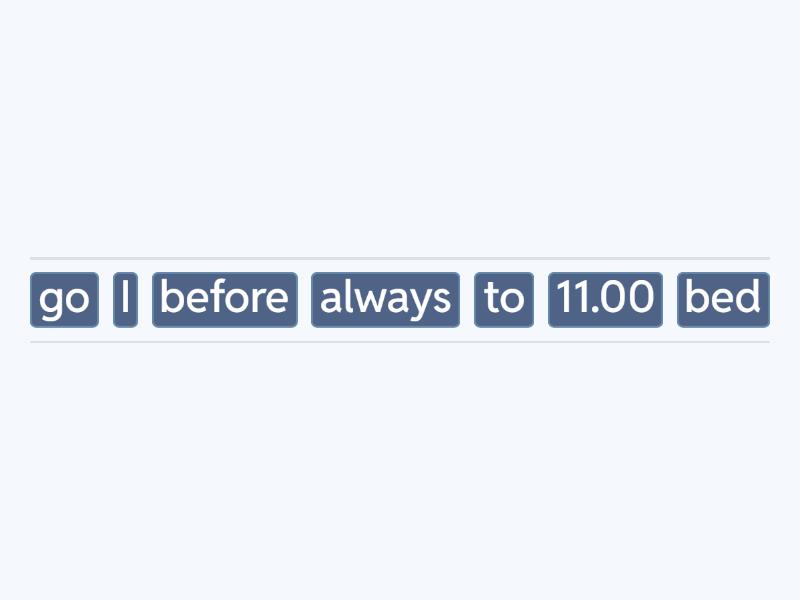 I always go to bed before 11.00, Kate hardly ever sees her family, We never go shopping on Saturdays, I go to the dentist's twice a year, They sometimes have breakfast in bed, I usually listen to the radio in the car, Alan runs in the park every day, Sam is often late for work, John doesn't often go to the theatre, I visit my mum once a month,