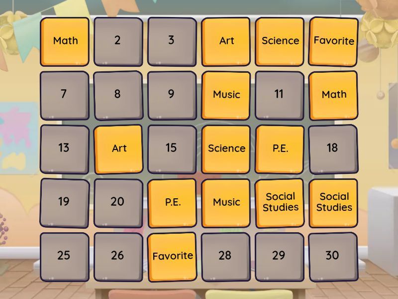 Favorite - Favorite, Science - Science, Math - Math, Music - Music, Social Studies - Social Studies, P.E. - P.E., Art - Art, Korean - Korean, Is - Is, Blue Bird - Blue Bird, Lemon Tree - Lemon Tree, Sports - Sports, Every Day - Every Day, I like to - I like to, What's your favorite - What's your favorite,