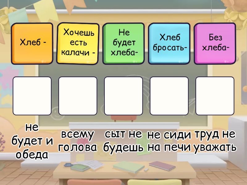 Хлеб - - всему голова, Без хлеба- - сыт не будешь, Не будет хлеба- - не будет и обеда, Хлеб бросать- - труд не уважать, Хочешь есть калачи - - не сиди на печи,