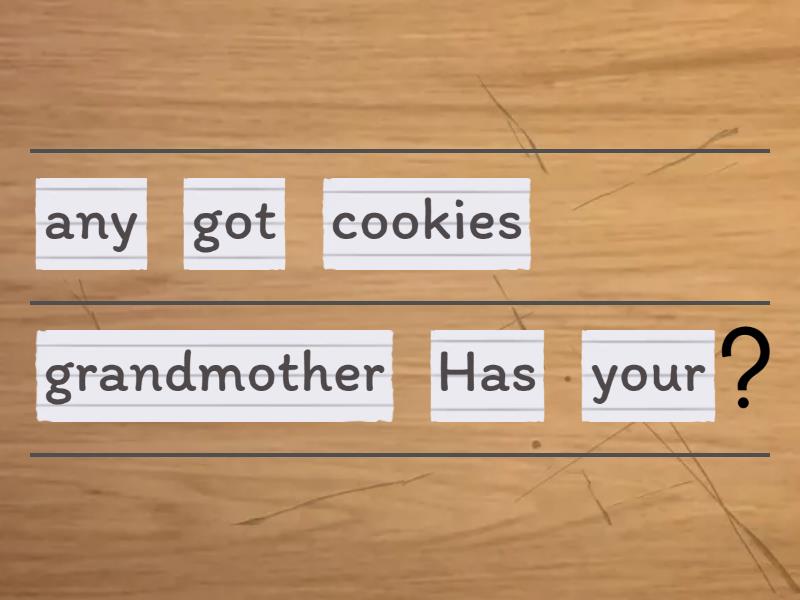 Is your car broken?, Is your bedroom clean?, Is your dog brown?, Has your sister got a boyfriend?, Has your grandmother got any cookies?, Has Arnie got any children?, Does Suzy drive to work every day?, Does Jeff live in Los Angeles?, Does Cheryl work in cinema? ,