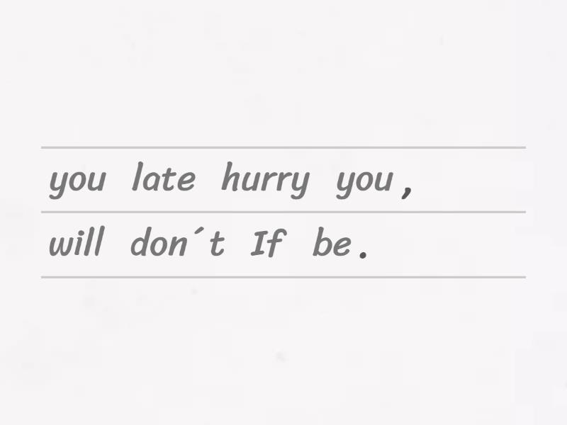 If you don´t hurry, you will be late., If the weather is warm, we will go to the beach., If you eat fruit, you will be healthy., If you learn, you will get a good mark., If it rains, he will take an umbrella., If they win the competition, they will travel to Liverpool., If you eat confectioneries every day, you will have bad teeth., If Ben sells confectioneries at school, he will be suspended., If you don´t sleep, you´ll be very tired., If I buy a mobile telephone, I will call my sister every day., If my dog runs away from home, I will be very sad., If Ben sells junk food, the school will confiscate that., If I buy a bicycle, I will drive it every day., If she goes to a doctor, she will get a medicine.,