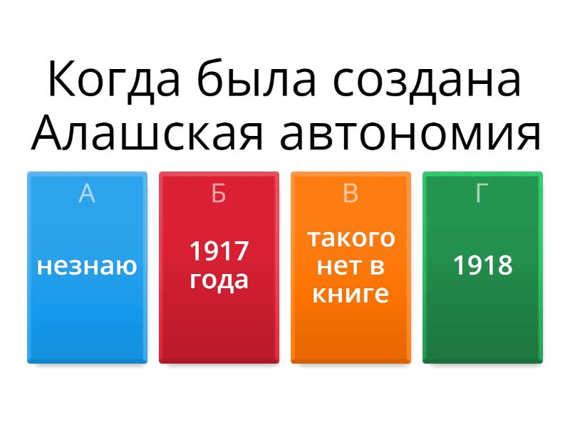 1) Когда была создана Алашская автономия  a) незнаю b) 1917 года c) такого нет в книге d) 1918 2) кто не признавал казахскую автономию? a) сам Бокейхан b) Акпаев c) её все признали d) большевики и белогвардейцы 3) где получил 40 баллов Бокейхан a) в школе b) в институте c) на тайном совещание d) ни где 4) из скольки человек должно было состоять правительство a) из 40 b) из 1000 и более c) из 20 d) его отменили 5) кто был председателем Алашской автономии a) Акпаев b) Бокейханов c) Абай d) Шокай 6) мухтариат это? a) незнаю b) алаш c) тайное совещание d) Туркестанская автономия 7) кто был председателем Временного правительства? a) Шокай b) Тынышпаев c) Бокейхан d) никто 8) когда каратели захватили город? a) такого события нету b) 1991 года 31 января c) незнаю d) 29 января 1918 года 9) что произошло 1917 года a) революция b) краевой съезд мусульман c) Туркестанская автономия прекратилась d) расстрел 10) в каком году был сформирован алашский конный полк a) 1920 b) 2000 c) 1918 d) возможно его не было