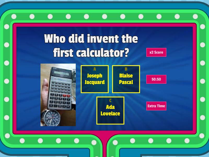 1) Who did invent the first calculator? a) Joseph Jacquard b) Blaise Pascal c) Ada Lovelace 2) Who was the first computer programmer? a) Ada Lovelace b) Babbage c) Pascal 3) Who did design the Analytical Engine? a) Joseph Jacquard b) Charles Babbage c) Herman Hollerith 4) Herman Hollerith built the first ________________________ a) computer b) calculator c) tabulating machine 5) Harvard Mark I constructed the first computer that could store info using __________________________ a) a mouse. b) table. c) a binary code. 6) What did Alan Turing build during the WWII? a) Colossus b) Calculator c) Colosus 7) IBM used _____________________ instead of electrical switches to make the computer faster. a) microprocessors b) vacuum tubes c) Colossus 8) What did personal computers possible to handle more information? a) Vacuum tubes b) Microprocessor 9) Jobs and Wozniak made the _______________ a) World Wide Web b) Apple II c) Apple 10) Who was Hedy Lamarr? a) She created a secret communication system called "spread spectrum". b) She did not create the Wi-Fi