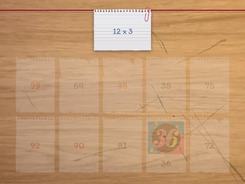 36 - 12 x 3, 92 - 23 x 4, 98 - 49 x 2, 38 - 19 x 2, 81 - 27 x 3, 72 - 36 x 2, 90 - 45 x 2, 99 - 33 x 3, 64 - 16 x 4, 75 - 25 x 3,